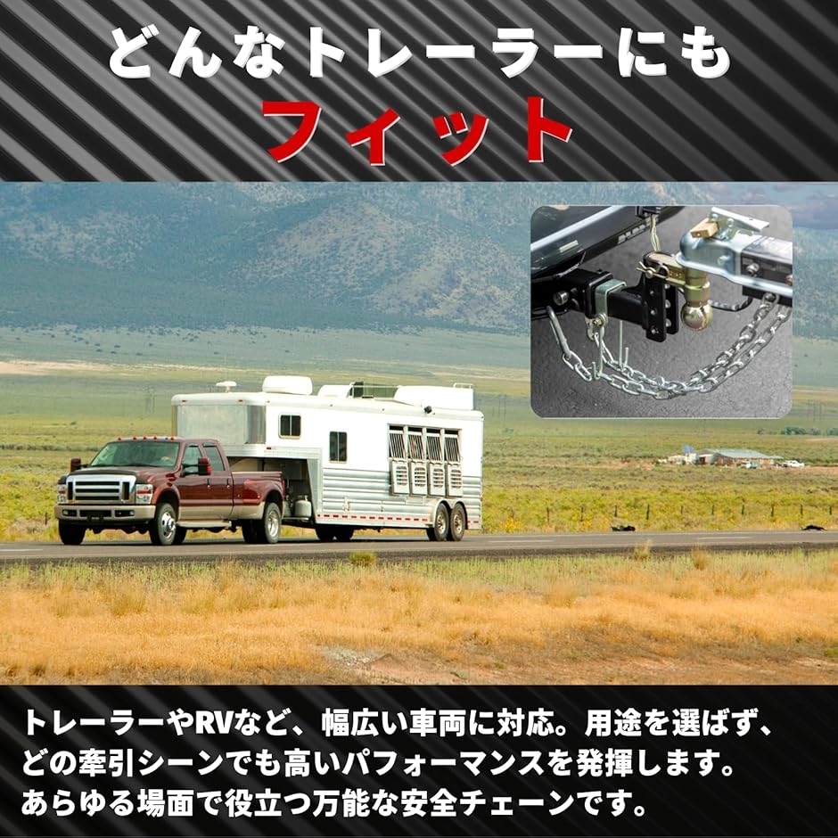 「多用途に対応」 この安全チェーンは、トレーラーやRVなど、あらゆる牽引用途で使用可能です。