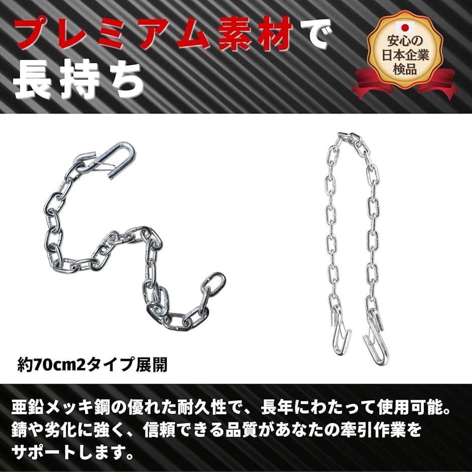 「実用的なデザイン」 チェーンは約70cmと適切な長さで、Sフックが付属しており、車両に安全に接続できます。