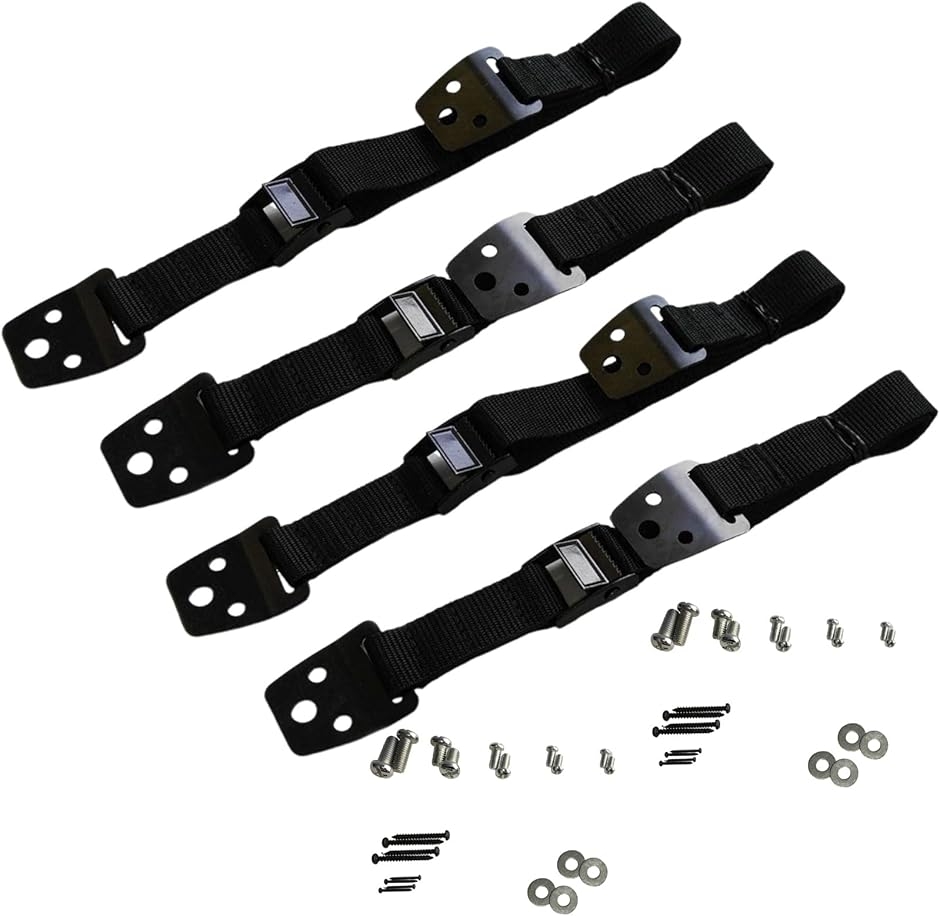 「サイズ」ベルト:150x 4cm/340 g, ネジ8 x 20mm(2個), 8 x 14mm(2個), 6 x 12mm(2個), 5 x 12mm(2個),4x12mm(2個), 4 x 40mm(4個), 4 x 25mm (4個), ワッシャー(4個)/素材:ベルト=ナイロン, バックル=合金/2本セットまたは4本セット