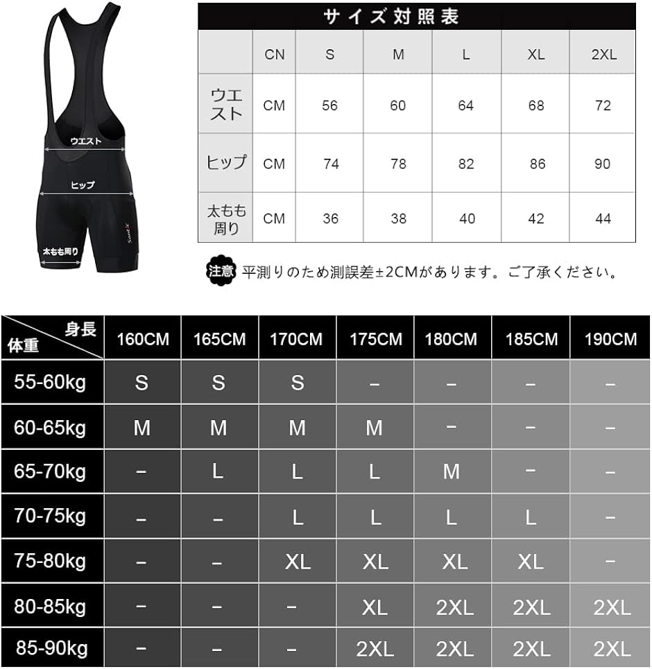 | 商品名 | ビブショーツ ビブパンツ メンズ サイクルウエア 夏用 自転車 パッド付き 吸汗速乾 |