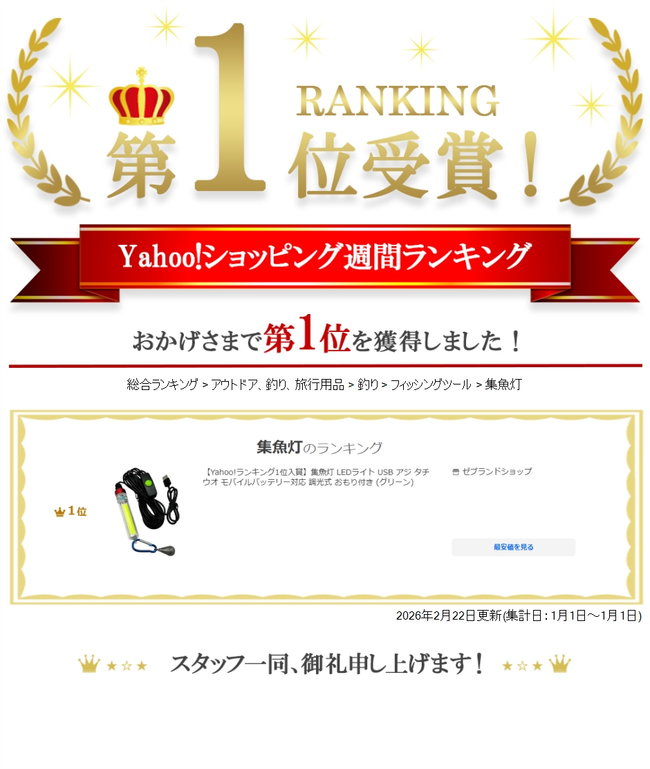 | 商品名 | 集魚灯 LEDライト USB アジ タチウオ モバイルバッテリー対応 調光式 おもり付き 5m 水中 夜釣り 海釣り 集魚ライト |