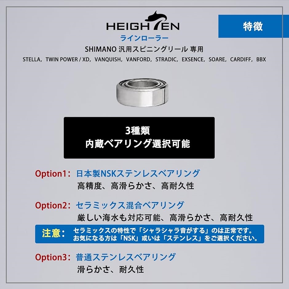 4)三種類ベアリング選択可能:セラミック混合ベアリング、NSKステンレス製ベアリング、普通ステンレス製ベアリング。