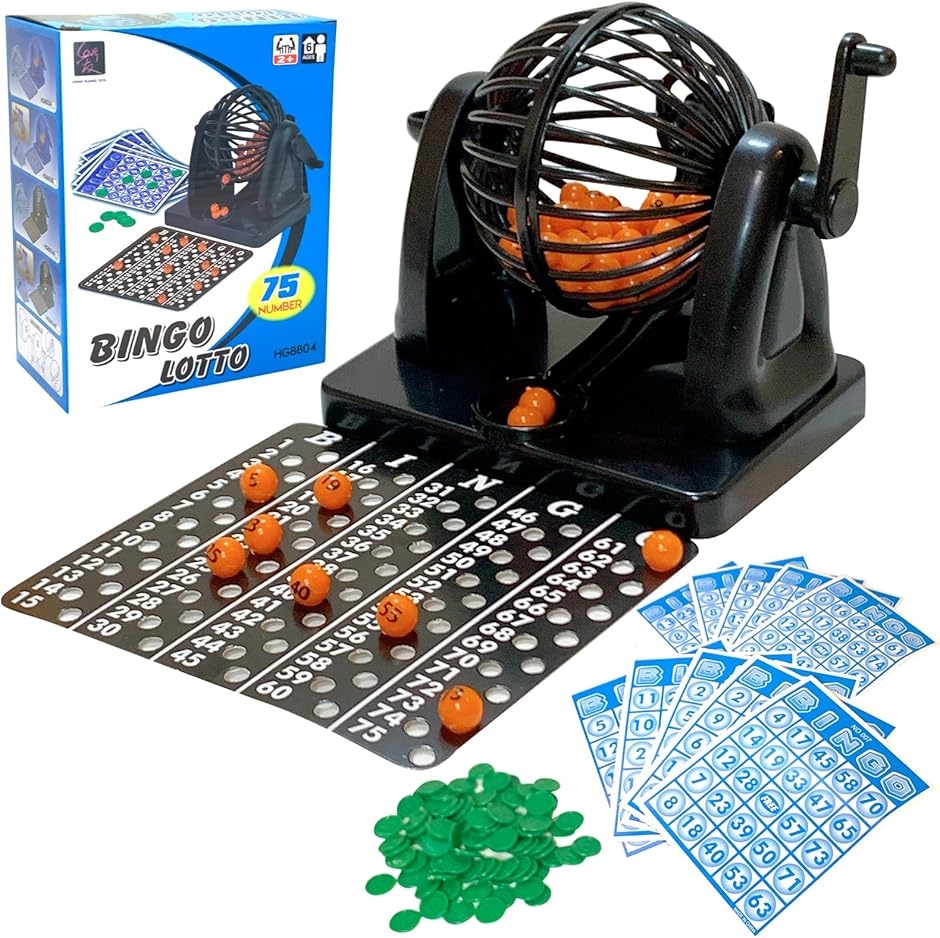 | 商品名 | ビンゴゲームの決定版。豪華フルセット ガラポン式ビンゴマシン ビンゴカード10枚 ボール75個 マーカー75個 マスターボード1枚 くじ ガラガラ抽選機 ビンゴゲーム 対象年齢6歳以上 |