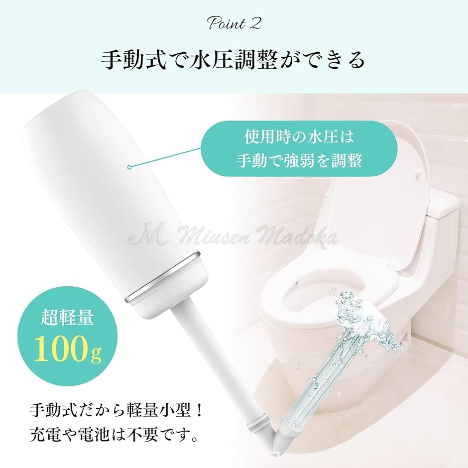 | 商品名 | 軽量&大容量400ml手動式 おしり洗浄器|充電不要・水タンク内蔵|旅行・介護・赤ちゃん用・防災 |