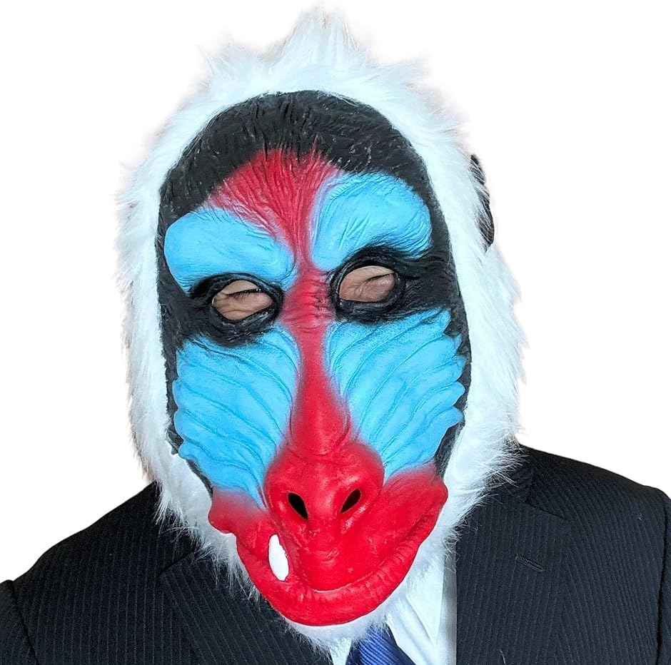 赤と青の派手な顔色を再現した、リアルで面白いアニマルマスク。