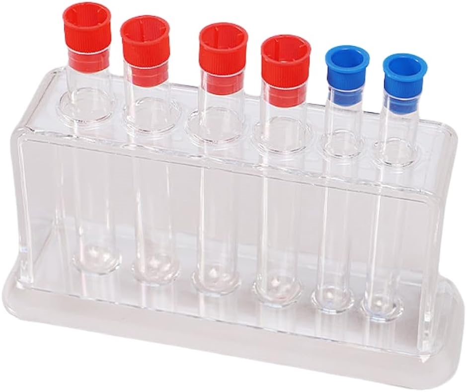 「商品詳細」サイズ:?17cmx13cmx5cm、重量:80g、材質:プラスチック、梱包内容:試験管立て・試験管6本(フタつき)