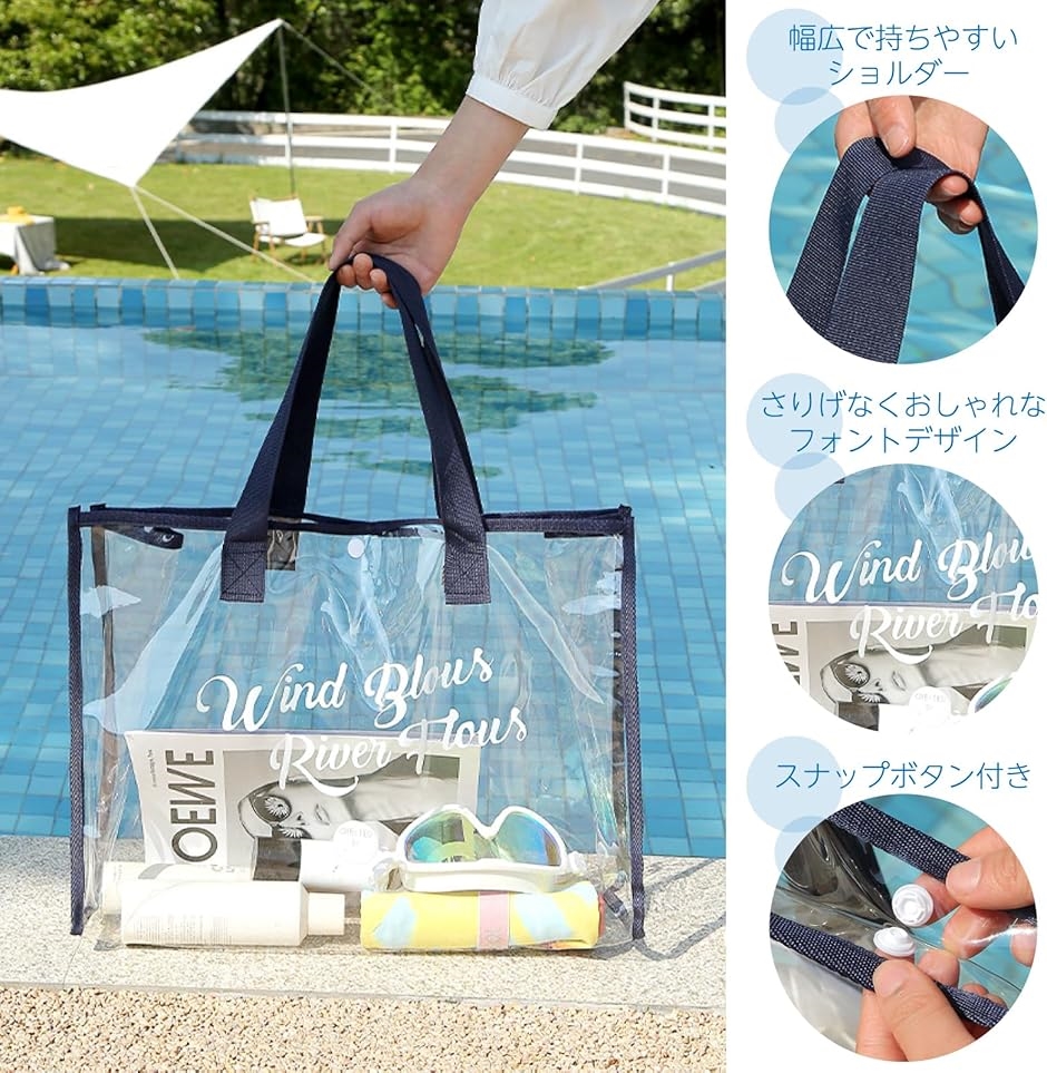 「大容量」タオル、ビーチサンダル、水着、帽子、着替え、飲み物、携帯などたっぷり入る大きいクリアバッグ