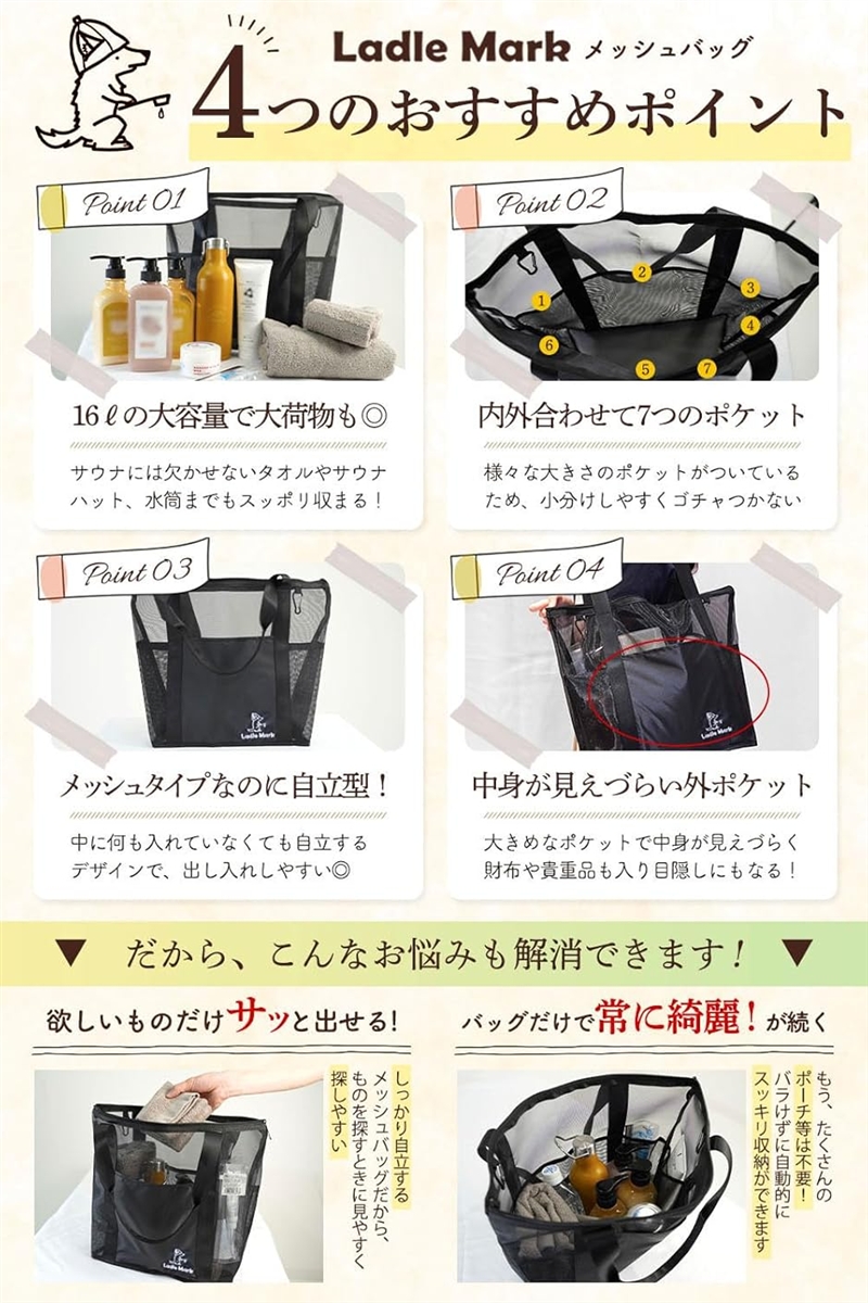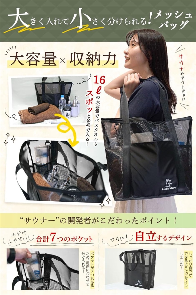 | 商品名 | ハイロバッグ サウナ メッシュ スパ 温泉 プール ジム 大容量 x 収納力 x 自立 ラドルマーク サウナ ビーチ ジム 銭湯 |