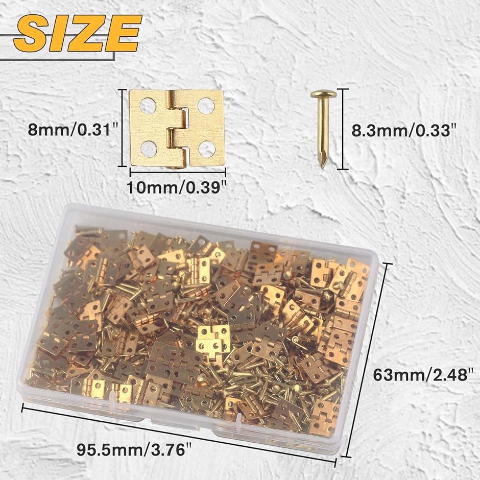 ミニヒンジは長さ0.31インチ/0.8cm、幅0.39インチ/1cm、ネジは長さ0.31インチ/0.8cmで、普段使いや作業に最適です。