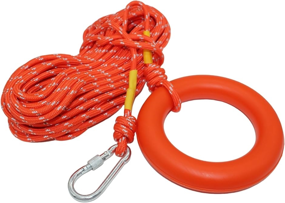 浮輪部分を投げて溺れた人にリング部分を投げて救助する、シンプルな救命ロープです。