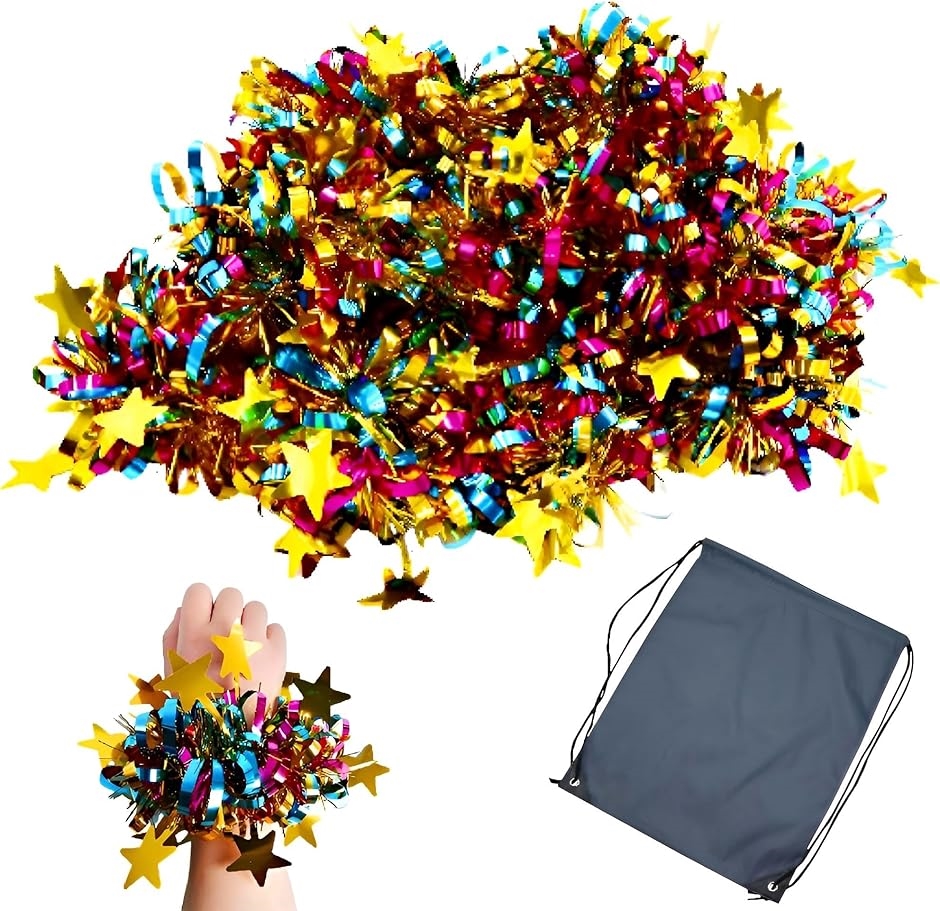 手首にくるっとはめて使えるポンポン。軽いけど、キラキラの星付きのメッキテープなので、存在感たっぷり。