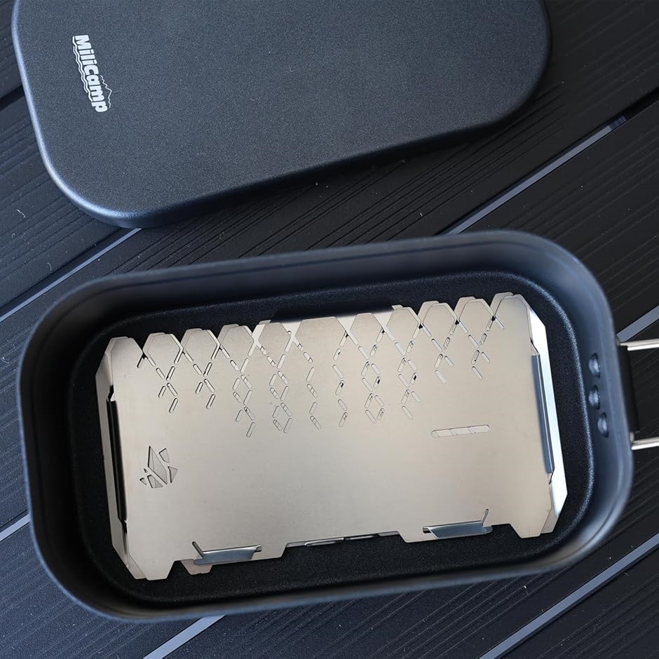 メスティンを乗せるための五徳や、風から火を守る風防の役割を果たしてくれます。