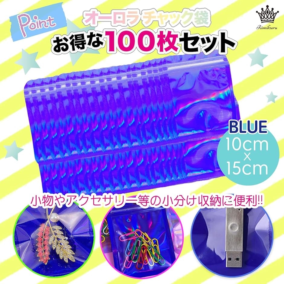 | 商品名 | オーロラ チャック 袋 アルミ袋 チャック付き袋 ミニ ジッパー付き袋 厚手 小さい 10cmx15cm・ブルー100枚セット |