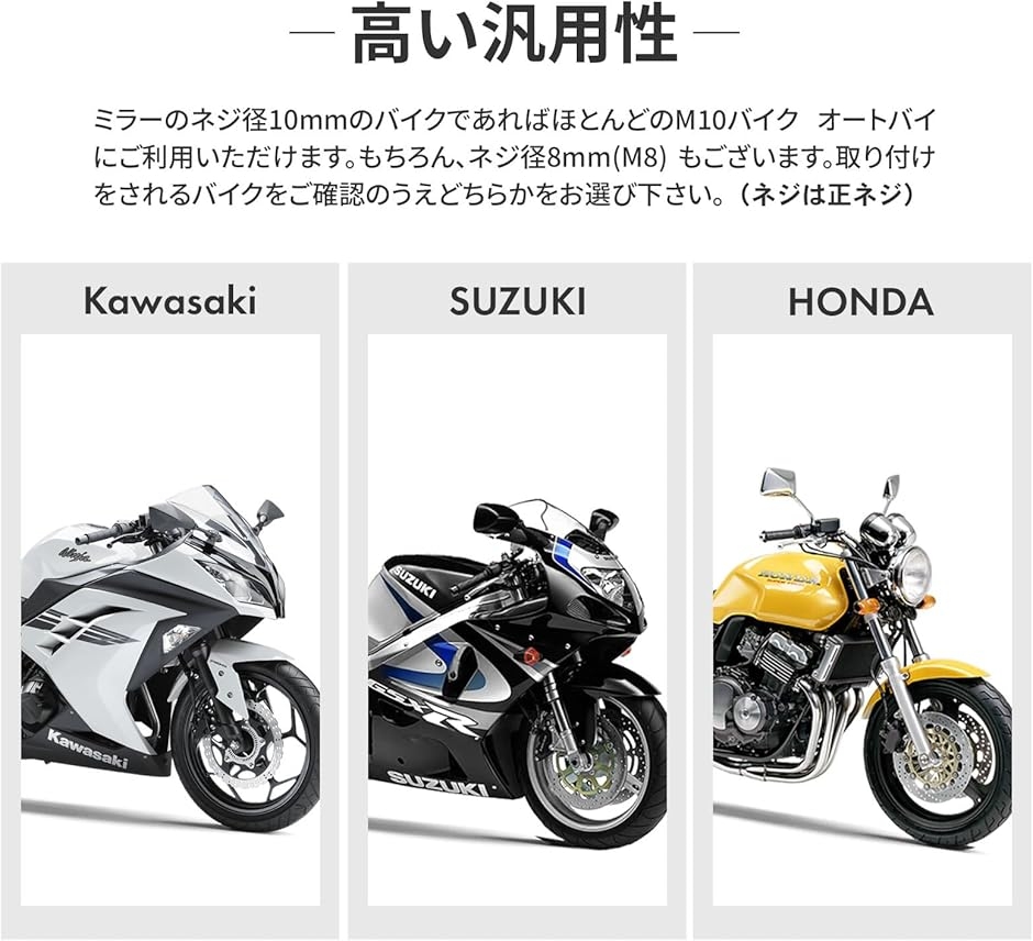 ミラーのネジ径:8mmのバイクであればほとんどの M8 バイク 原付きやスクター、オートバイなどにご利用いただけます。