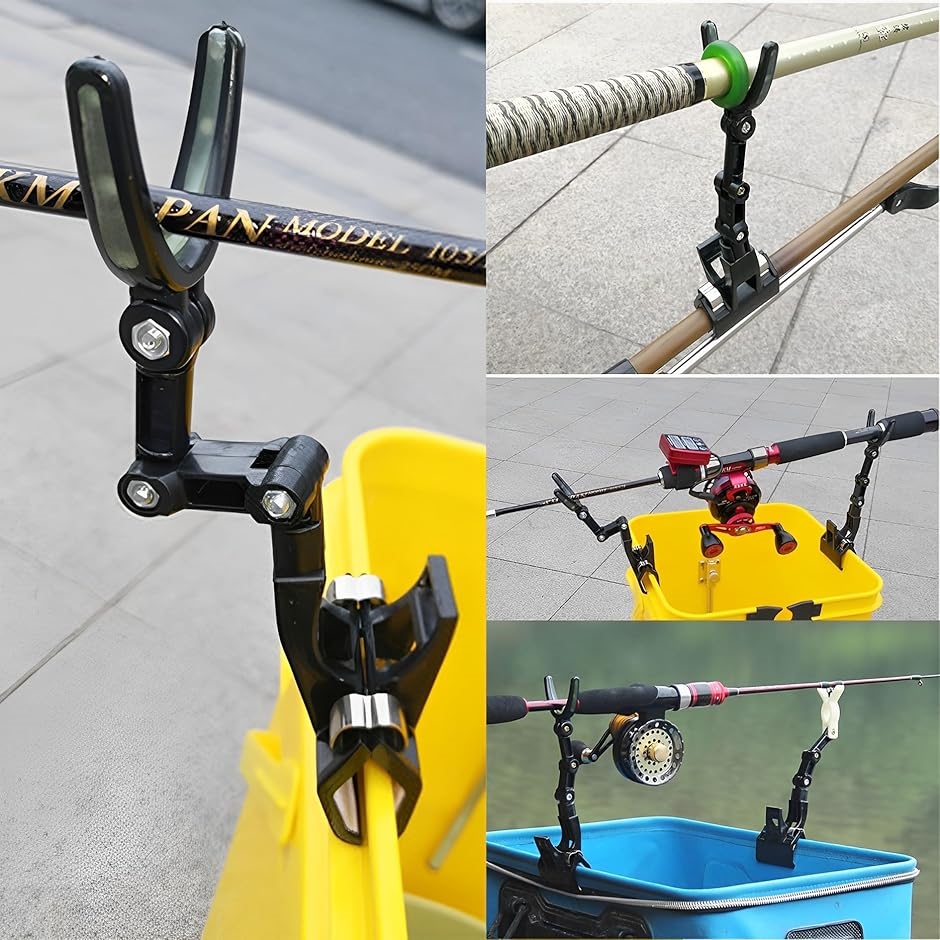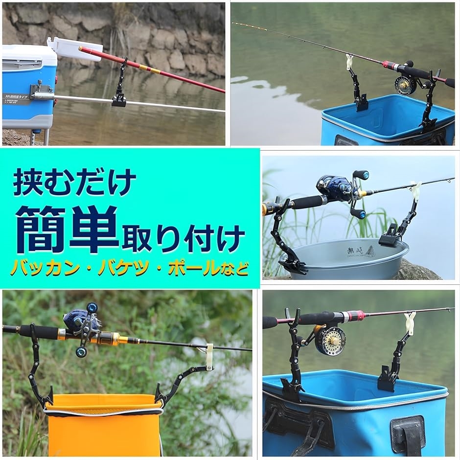 釣り竿をバケツやバッカンにクリップで挟んで使用するロッドホルダー(竿受け)です。