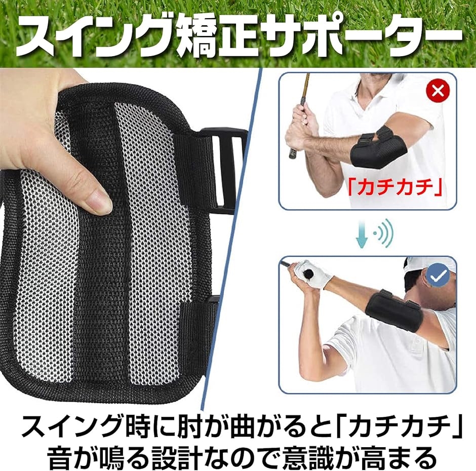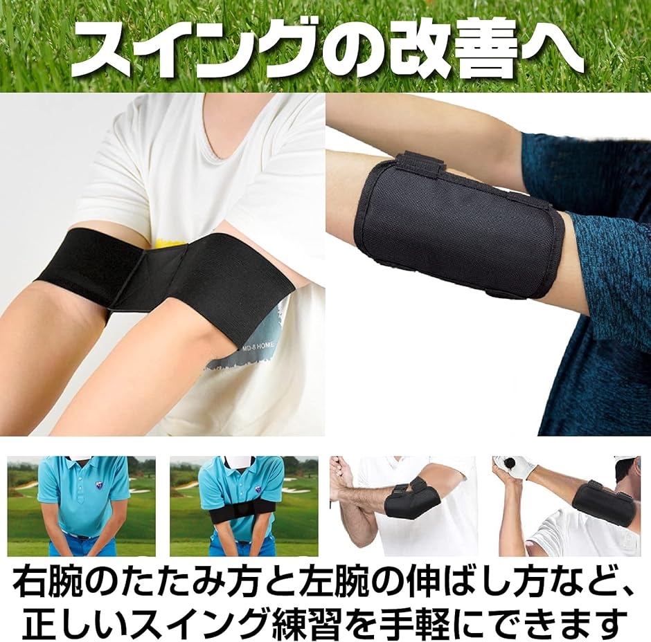 腕ベルト、肘サポーターは、スイングフォーム練習用の補正グッズ2点セット。