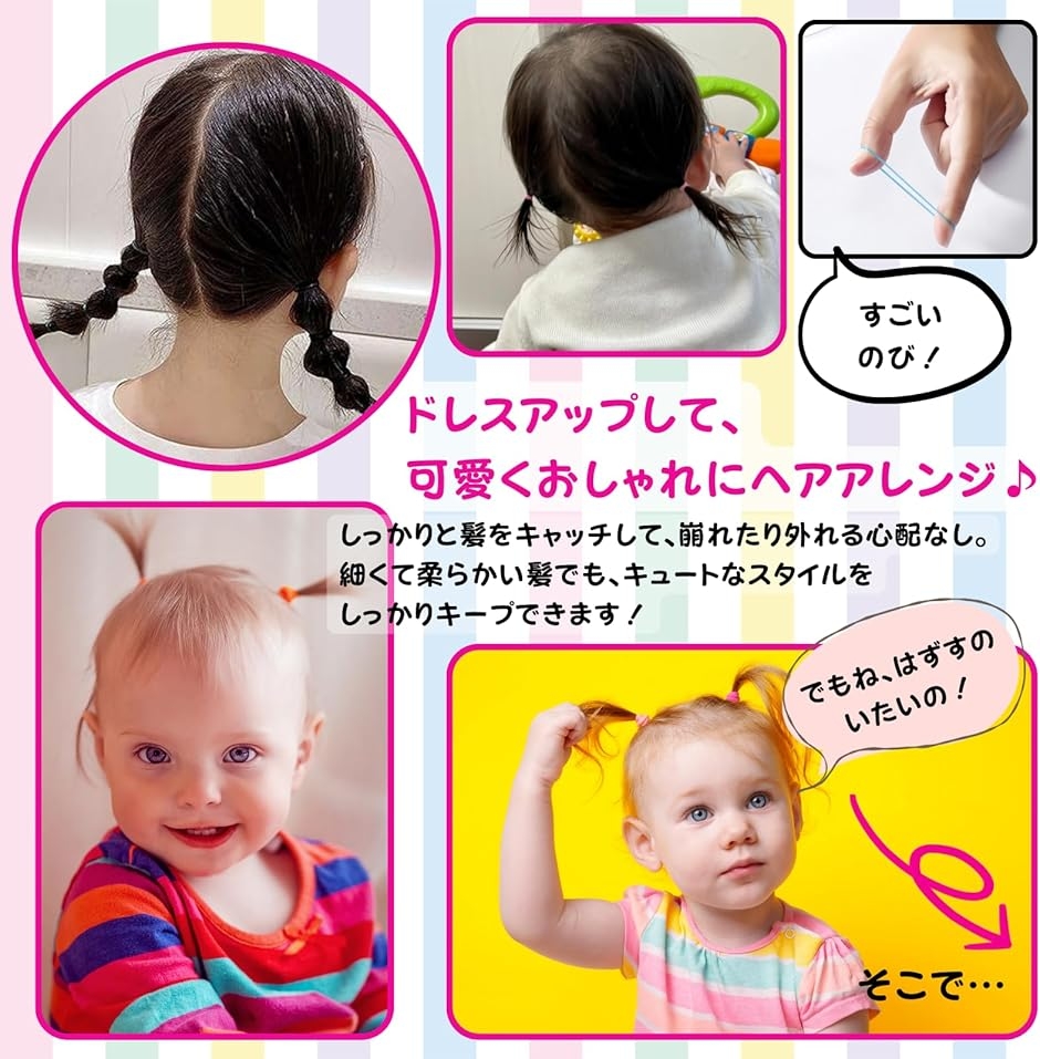 「快適な装着感」お子様のデリケートな髪に優しいシリコン製ヘアゴム。