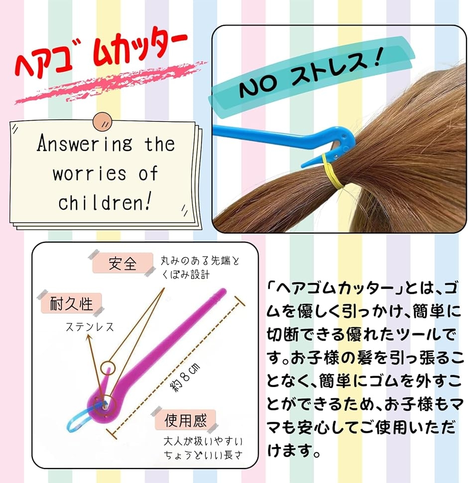 「簡単リムーバル」痛みを感じさせずにヘアゴムを外せる専用カッター付き。