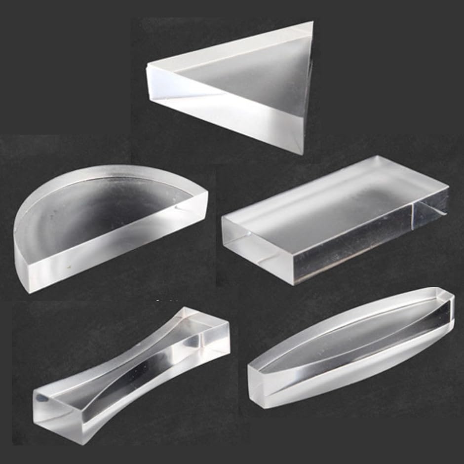 商品名 | 実験 光スペクトル 光学プリズム 5種 セット スペクトルグラス 凸レンズ、凹レンズ、四角レンズ、三角レンズ、半円レンズ プリズム 5種セット |