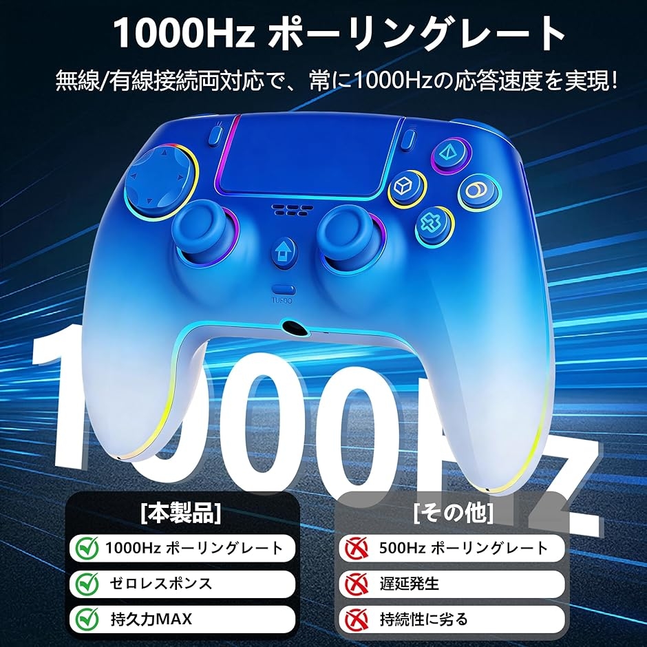 ターボ連射機能で素早い連打操作を自動化し、RGBカスタマイズ照明でゲームの臨場感を視覚的に強化。