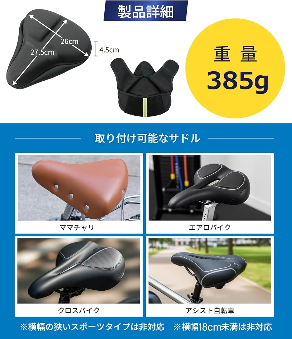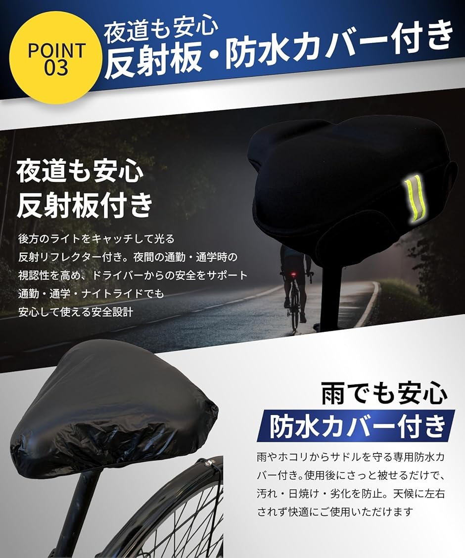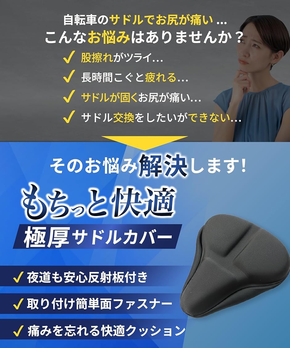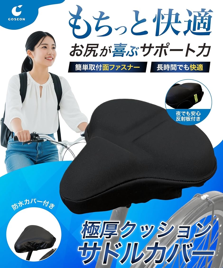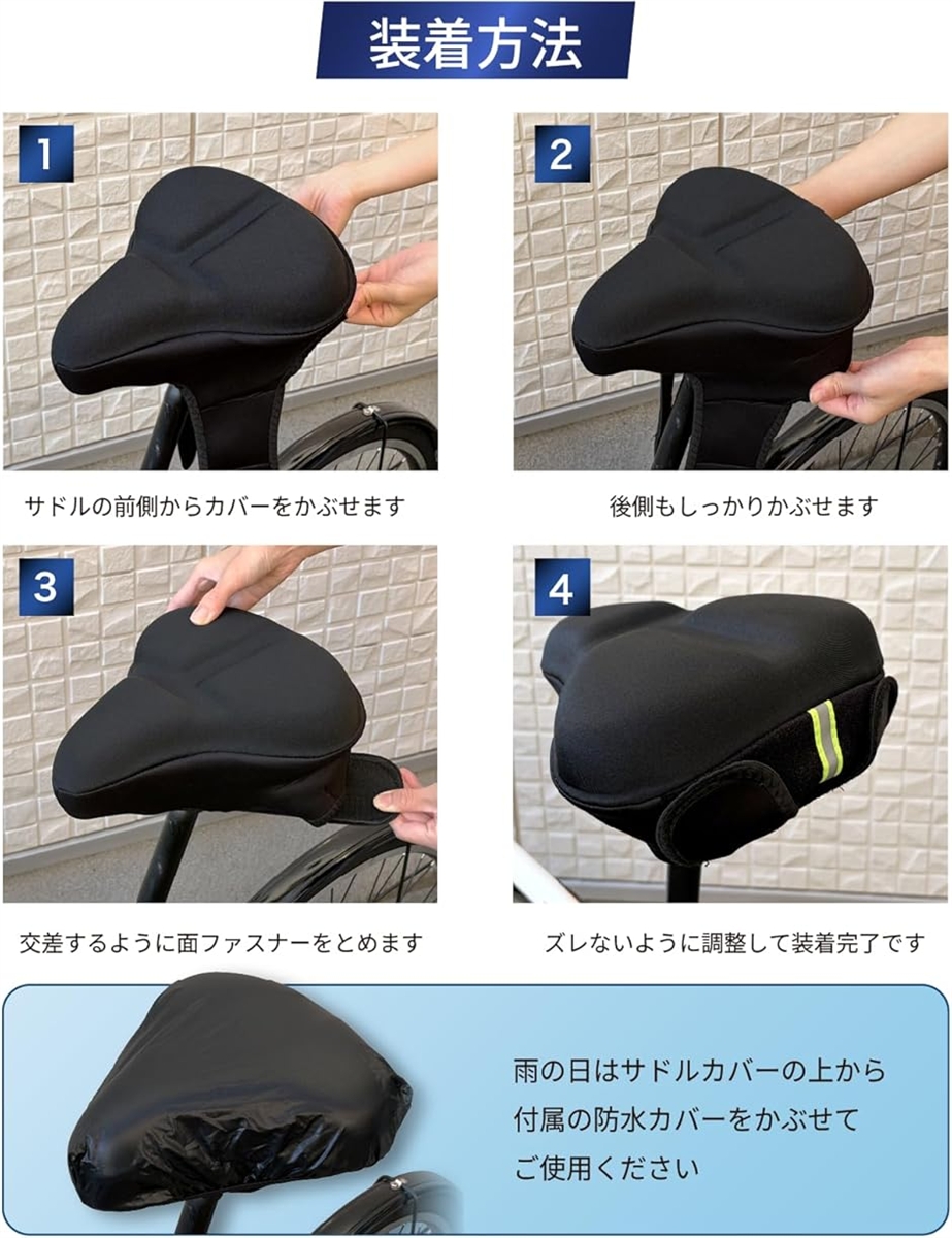 | 商品名 | サドルカバー サドル クッション お尻が痛くない もっちりクッション 自転車 防水カバー付き 超肉厚 ママチャリ クロスバイク エアロバイク 電動自転車 椅子カバー |