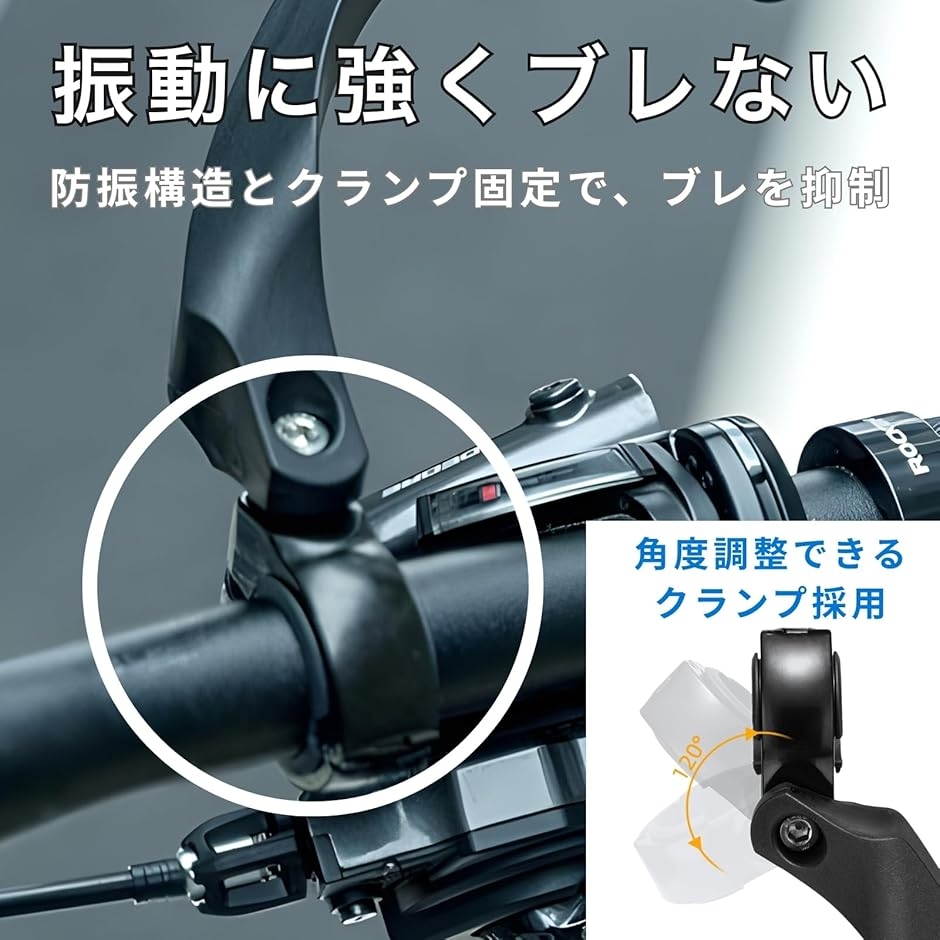 ブレない防振構造としっかり固定できるクランプ設計により、走行中でも安定した視認性を実現しました。