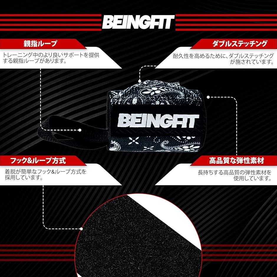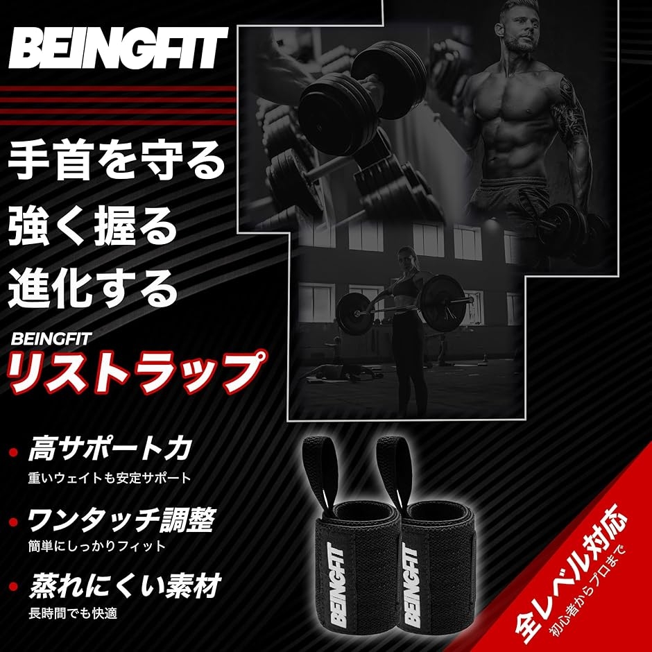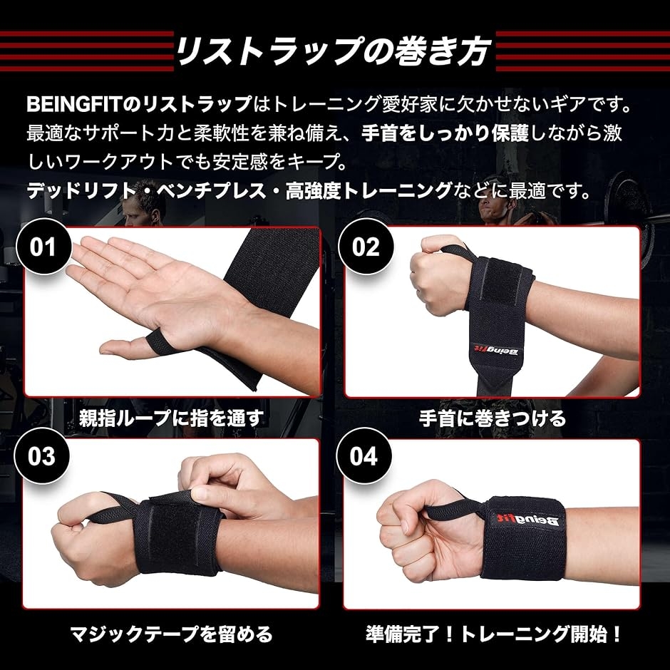 | 商品名 | Beingfit リストラップ 筋トレ ウエイトトレーニング 2個セット 男女兼用 手首 サポーター 固定 ベンチプレス リストバンド リストストラップ リストサポーター 13/18/24インチ |