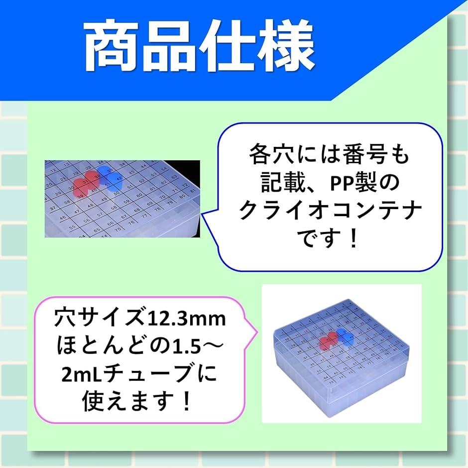 | 商品名 | 凍結試験管ボックス クライオボックス 冷凍保存ボックス 1.8mL 2mL PC製 ラボ用 冷凍ボックス マイクロチューブ 保存ケース 試料保存 チューブ収納 研究用 実験用 |