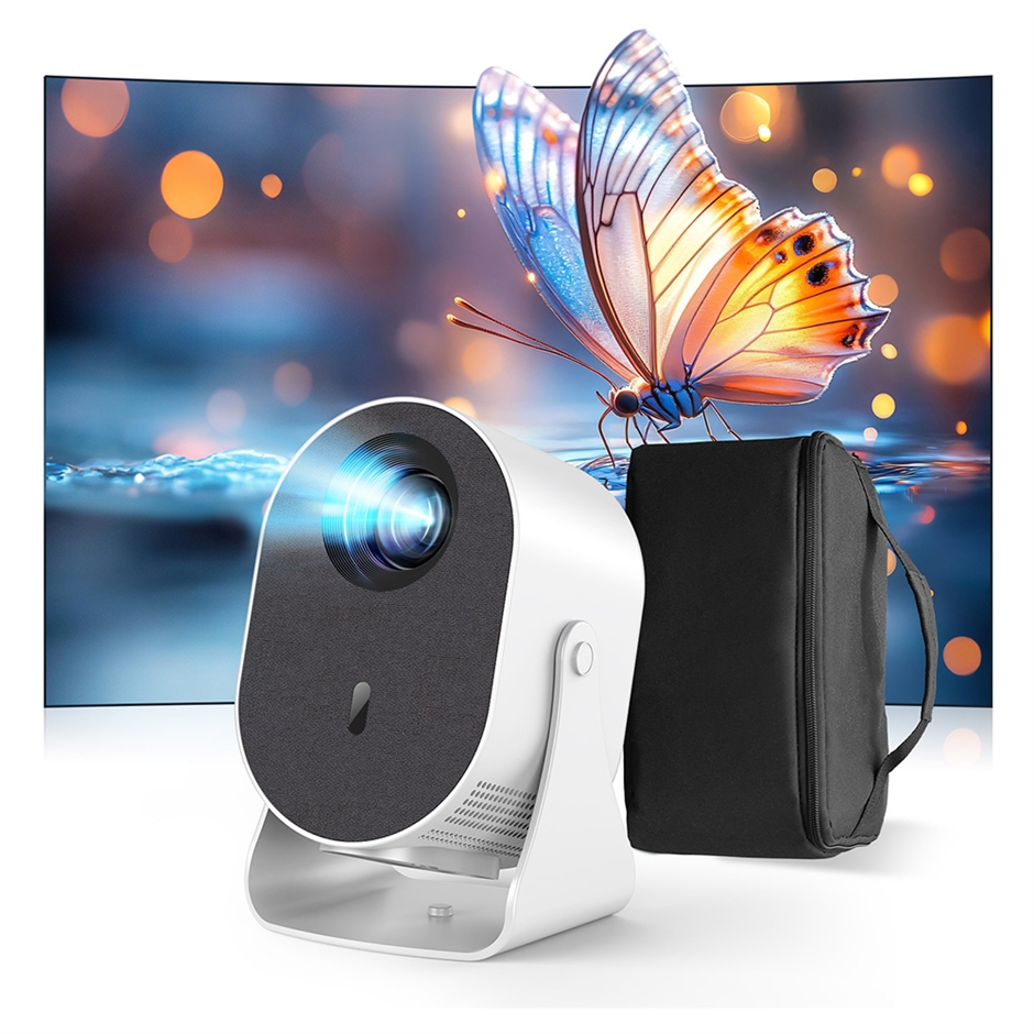 専用キャリングバッグが含まれており、軽量で持ち運びやすく、アウトドアや旅行にも便利な小型プロジェクターです。