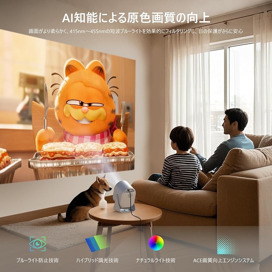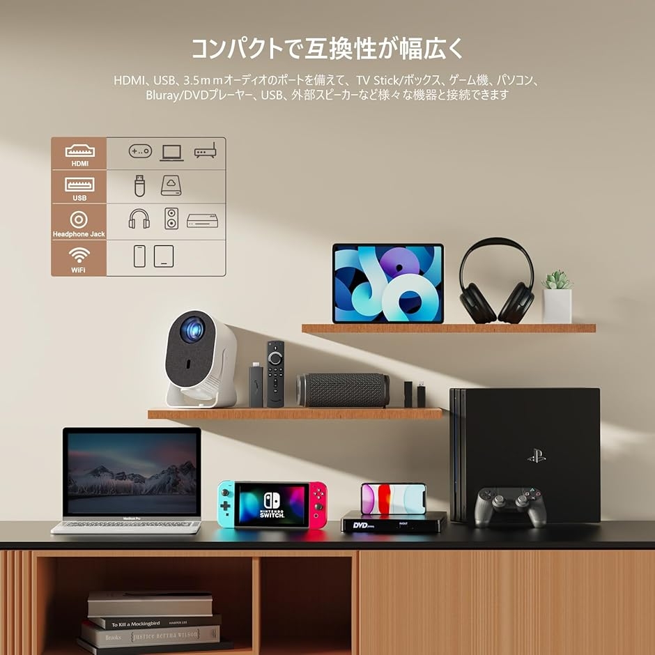家庭用小型プロジェクターとして初心者にも扱いやすく、映画鑑賞やゲーム、オンライン学習など様々なシーンで快適に利用できます。