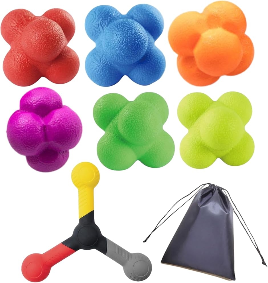 ランダムにバウンドするカラーボール6個は、予測不可能な動きを作り出し、反射神経と反応速度を効果的に鍛えることができます。