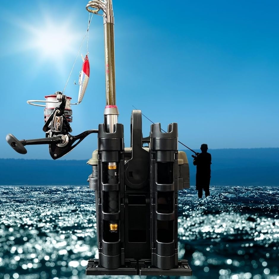 各種の釣竿やタックルボックスに対応している釣り竿のスタンド。