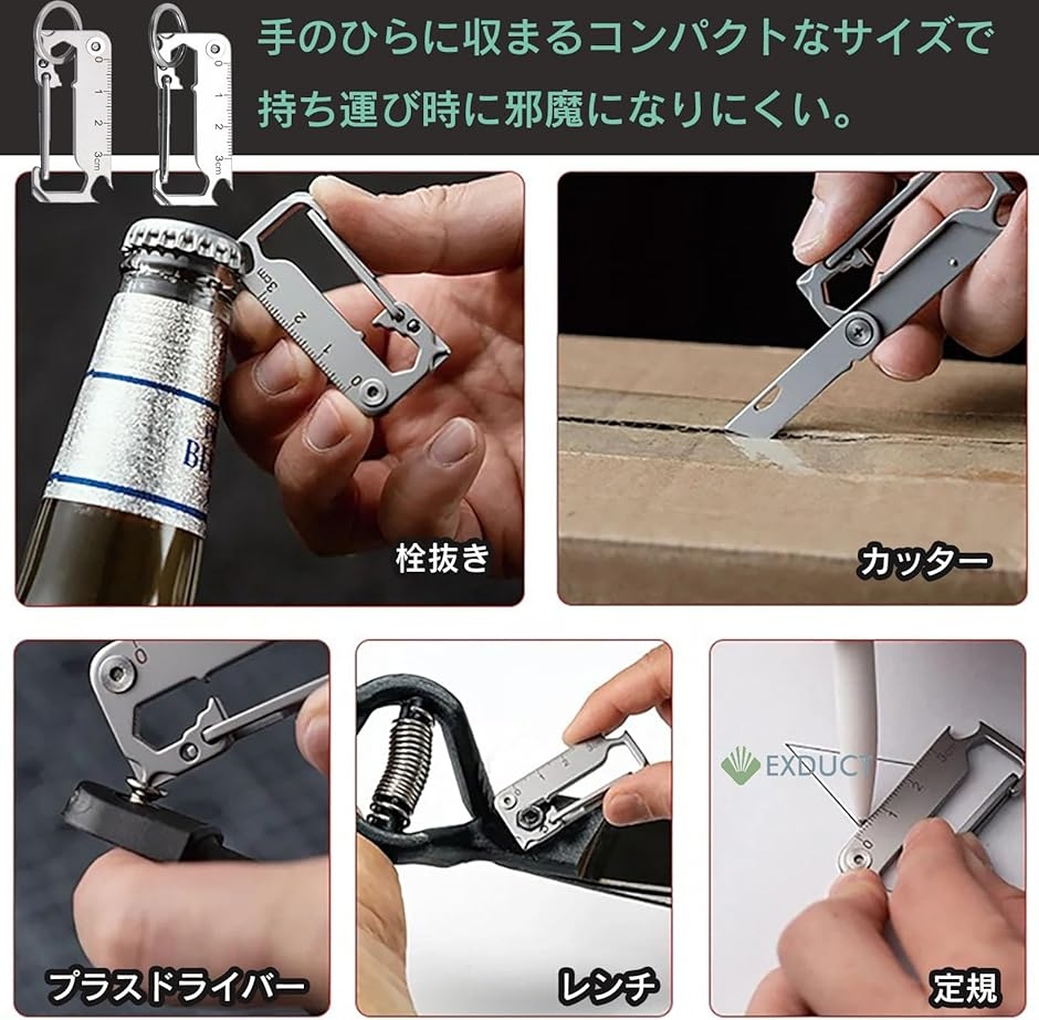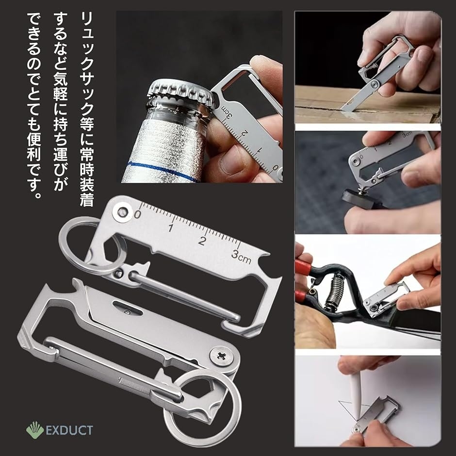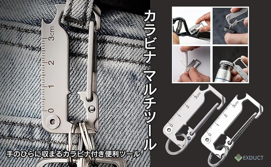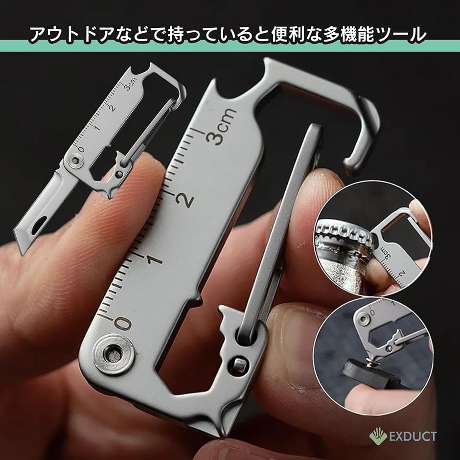 | 商品名 | マルチツール カラビナ キーホルダー ユーティリティー アウトドア キャンプ 登山 釣り 栓抜き ナイフ 工具 小型 多機能 ステンレス |