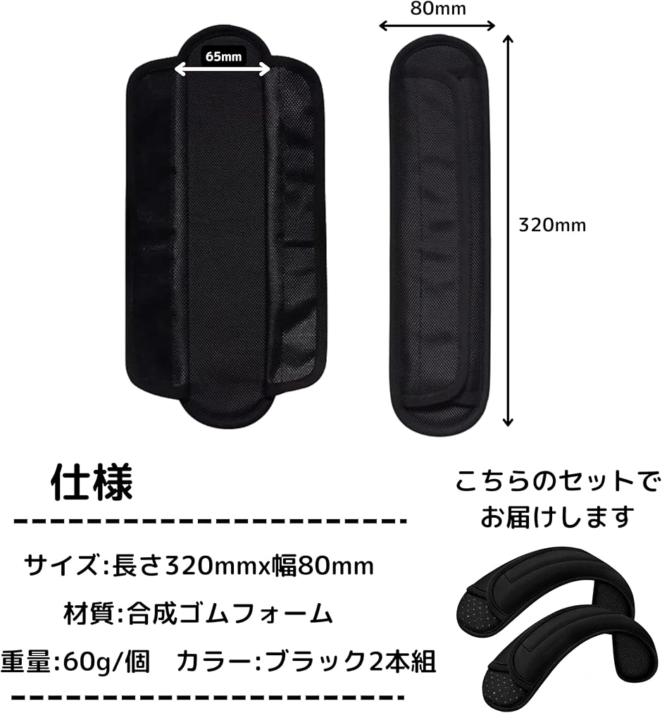 「仕様」サイズ:長さ320mmx幅80mm、材質:合成ゴムフォーム、重量:60g/個、カラー:ブラック:2本組