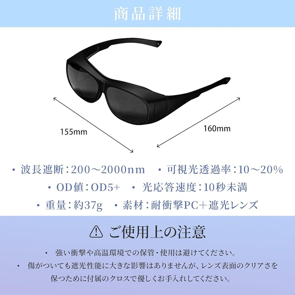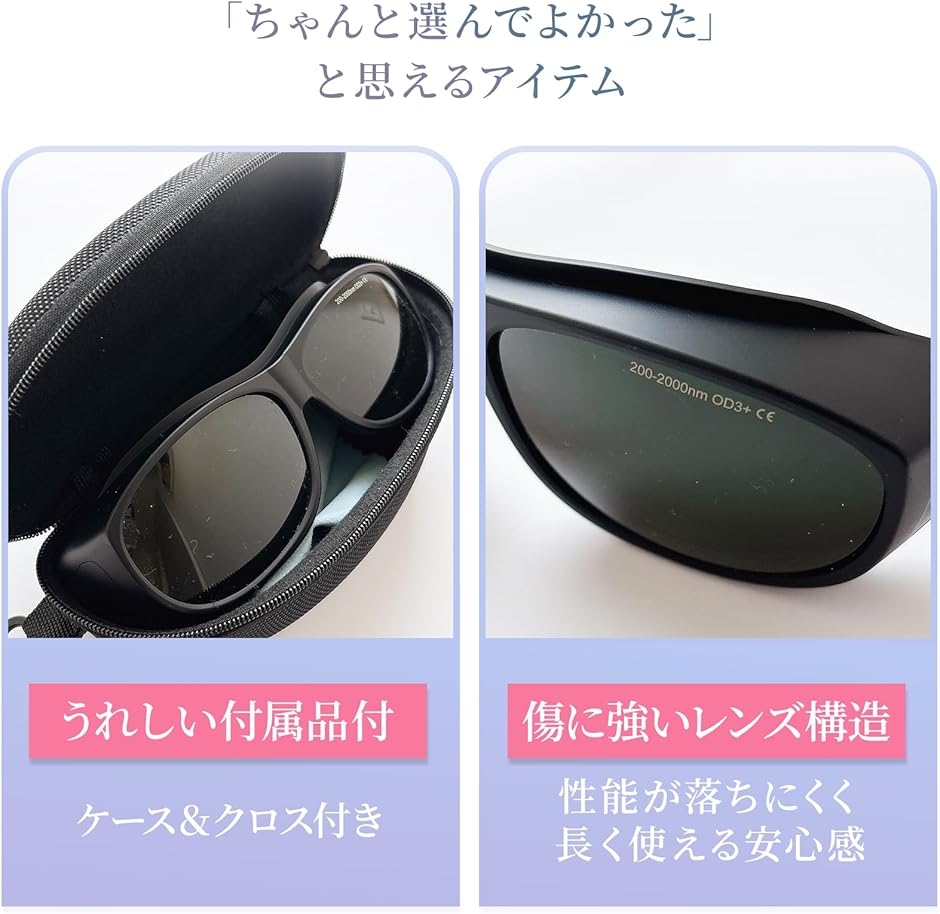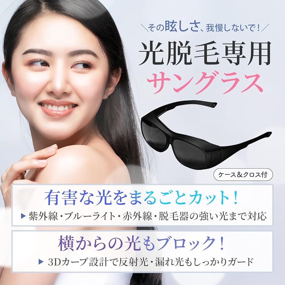 | 商品名 | 脱毛専用サングラス ケース付き軽量 遮光サングラス 3Dカーブ設計 光ブロック 保護メガネ |