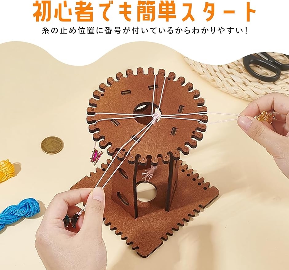 組紐 キット 内容:32スロット木製組紐ディスク、デスクトップ安定台座、組み立て支柱3本、わかりやすい日本語説明書付属で初心者の小学生女の子も安心してミサンガ作りを楽しめます