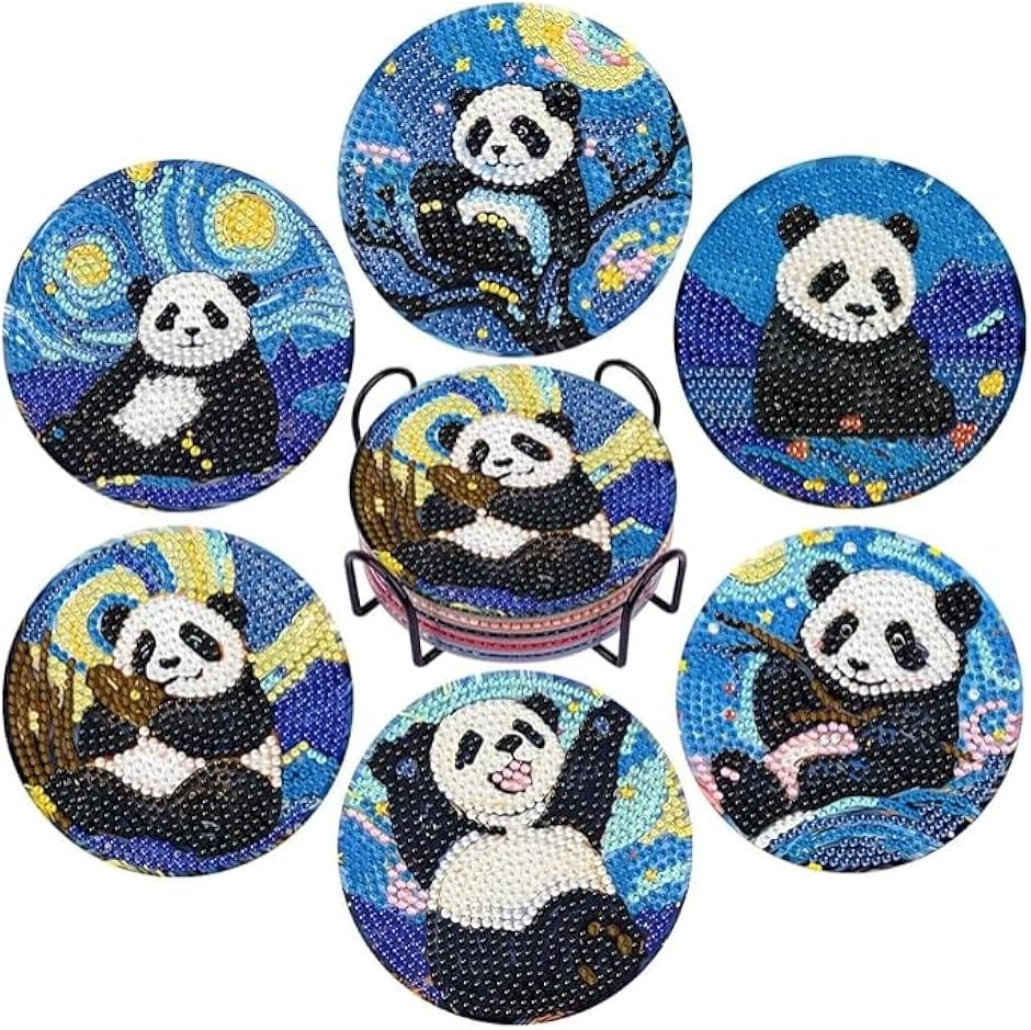 「ダイヤモンドアートコースターセットパッケージ内容」 *パンダダイヤモンドアートコースター:8枚 *コルクマット:8枚 *コースターホルダー:1台 *カラフルなダイヤモンド:1セット*ビーズトレイ:1個、ダイヤモンドペン:1本 *グルー:1個*チャック付ビニール小袋:5枚 *日本語取扱説明書付