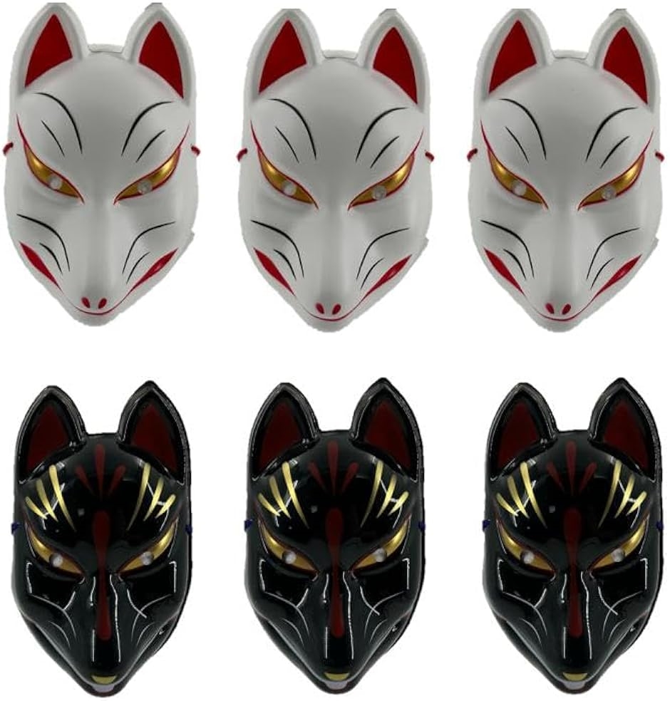 「狐面 サイズ」横14.5 cmx縦22cm 白 黒 セット