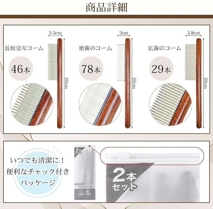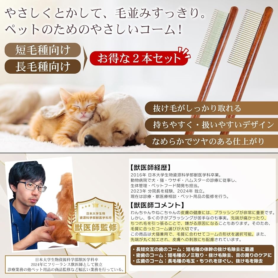 | 商品名 | ペット用コーム 短毛種用獣医師監修ペットブラシ ペットくし ブラッシング コーム 2本セット 犬・猫用品 長毛種・短毛種別 2 |