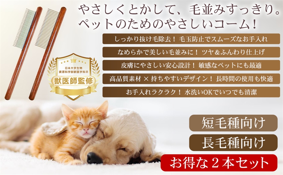 短毛種・長毛種に最適な2本セットのため、毛質に合わせたケアが可能です。
