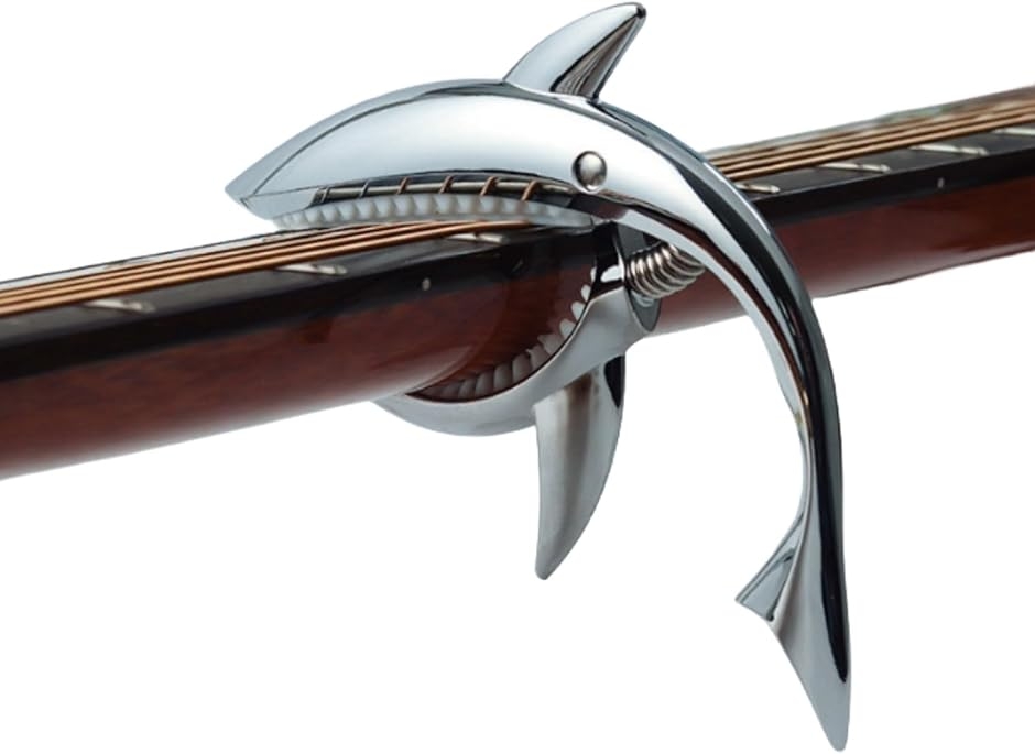 サメ型デザインが特徴的なカポタストは、ユニークでかわいい外観がおしゃれなアクセントとなり、練習や演奏の時間をより楽しく彩ります。