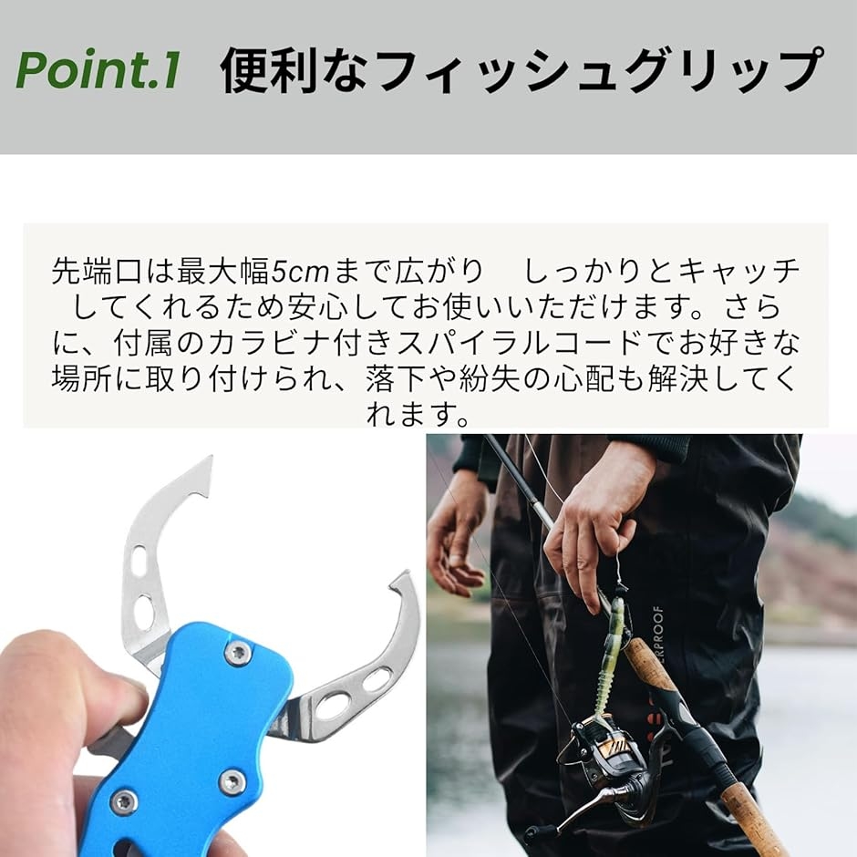 | 商品名 | フィッシュグリップ フィッシュキャッチャー 魚つかみ 釣り アルミ合金 軽量 軽量 魚掴み器 カラビナ |