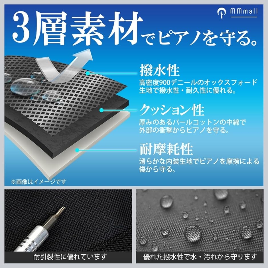 製品の強み 「野外イベントにも安心」撥水加工素材で急な雨でも中の電子ピアノをしっかり保護 「ステージ映えするデザイン」無駄を省いたシンプル美xカラー展開でコーデにマッチ 「動きやすい2WAY仕様」肩掛けも手持ちもOK。移動が多いライブアーティストに最適 「収納力バツグン」電源ケーブルやペダル、スマホまでも入る便利な外ポケット付き
