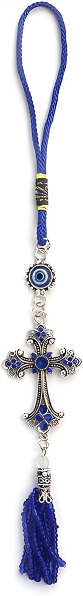 「贈り物にも最適な守護インテリア」 トルコの伝統的なお守り「ナザールボンジュウ」と、細部まで美しく仕上げられた十字架モチーフが融合した、車内用吊り下げ型アクセサリーです。