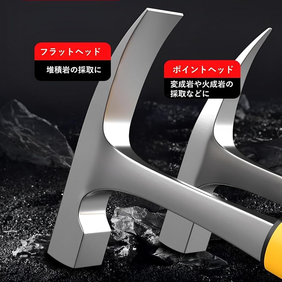 「用途多様なデュアルヘッド」 片側は鋭利なヘッドで、岩石の精密な採集や劈開、層状構造の剥離に最適です。
