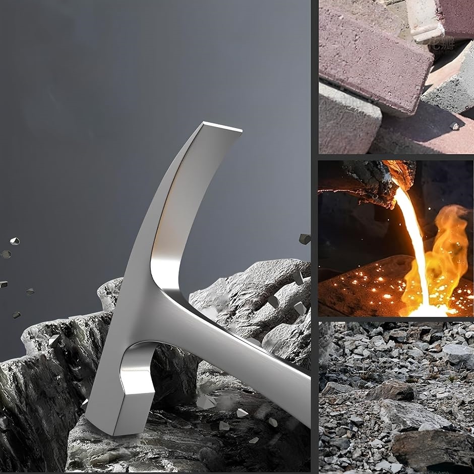 もう片側は平坦なハンマー面となっており、岩石の破砕、サンプル準備、地面の整地など、多岐にわたる作業に対応します。