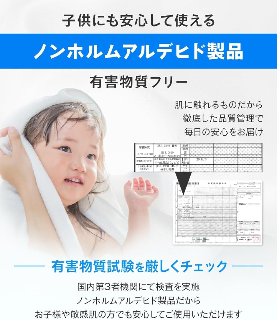 また、何度洗濯しても吸水力を維持し長期間にわたり快適に使い続けることができます。