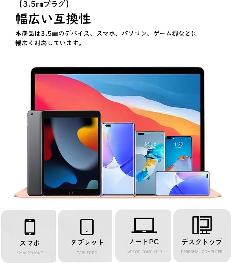 「幅広い互換性・直感的な操作性」有線 イヤホンはφ3.5mm(4極)のインターフェース付きのデバイス、スマフォー、パソコン、ゲーム機などに幅広く対応しています。