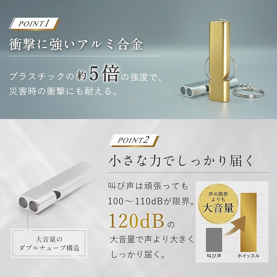 「災害用・緊急時に頼れる笛」 地震・停電・遭難時など、声が届かない状況でもしっかり音が響く。