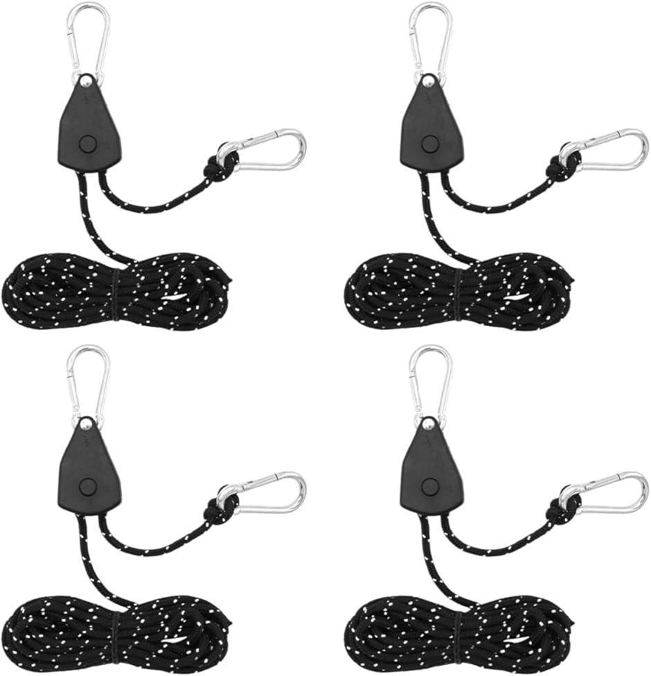 商品仕様 ・内容:ロープラチェットx4個 ・ロープ長:約4m ・ロープ径:約4mm ・耐荷重:約68kg ・カラー:カーキ/グリーン/オレンジ/ブラック/レッド キャンプやバーベキュー、フェス、ピクニック、車中泊、DIYなどあらゆるシーンで役立つ万能ギア。
